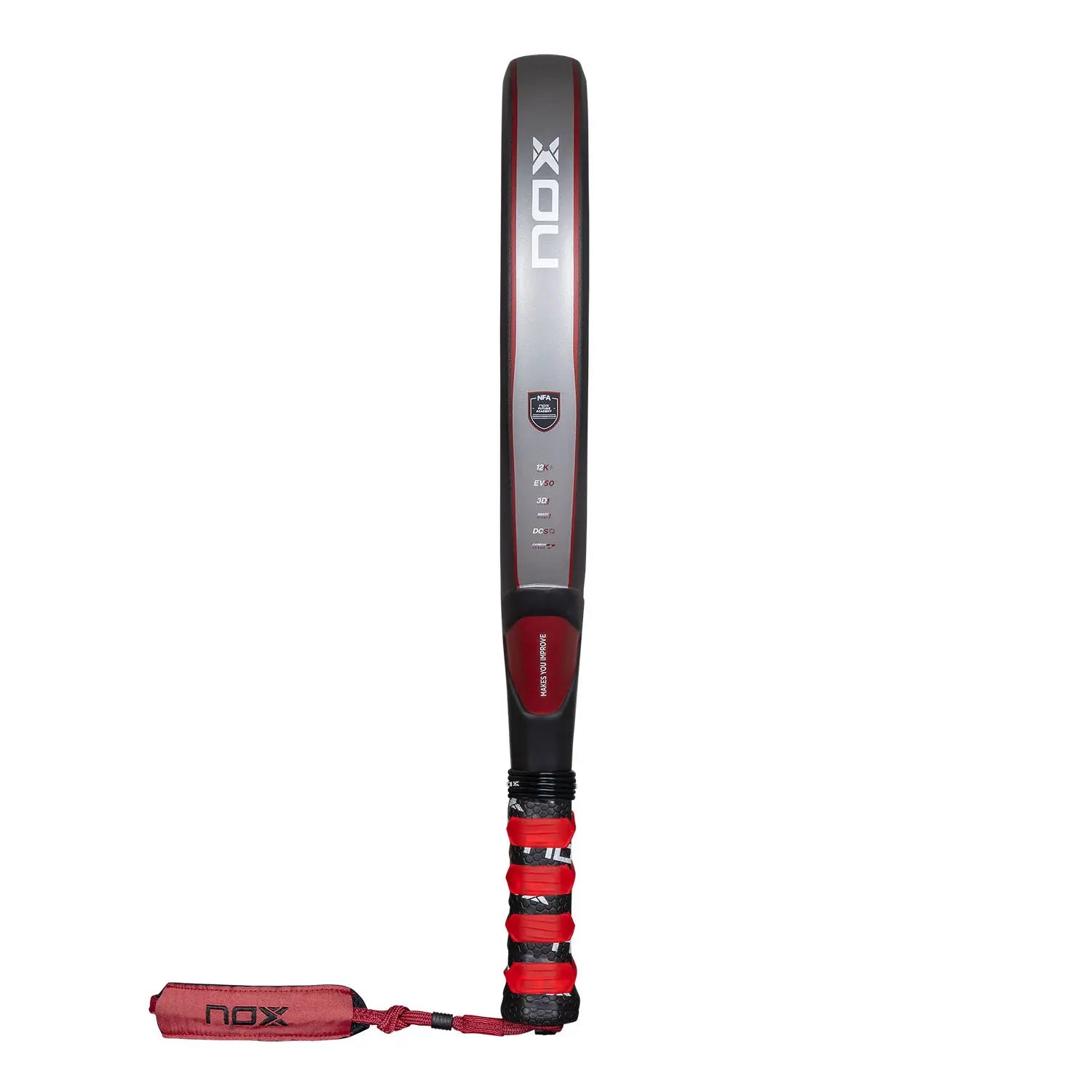 The 12K aluminised carbon face provides exceptional stiffness, power, and durability, while the EVA HR3 Core enhances comfort and responsiveness for a clean, consistent feel. Its diamond shape boosts power in every smash, making it ideal for offensive players who thrive at the net. Finished with a bold, futuristic Nox design, this racket looks as fierce as it performs.